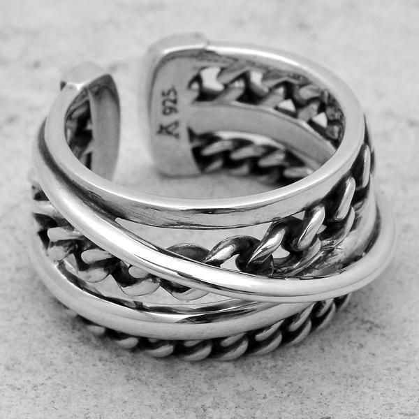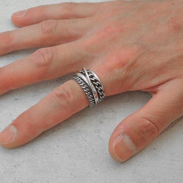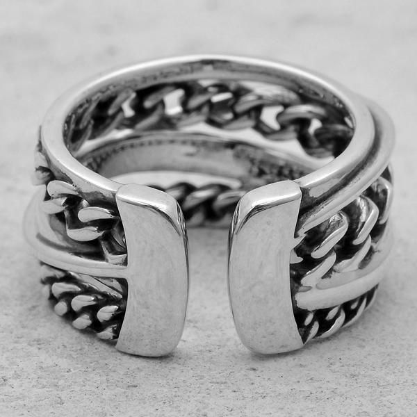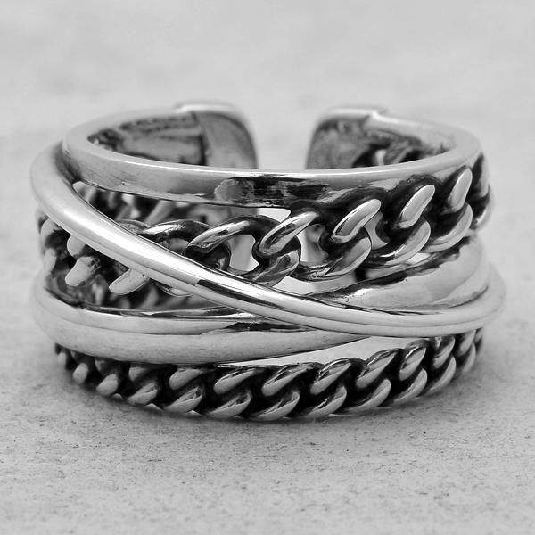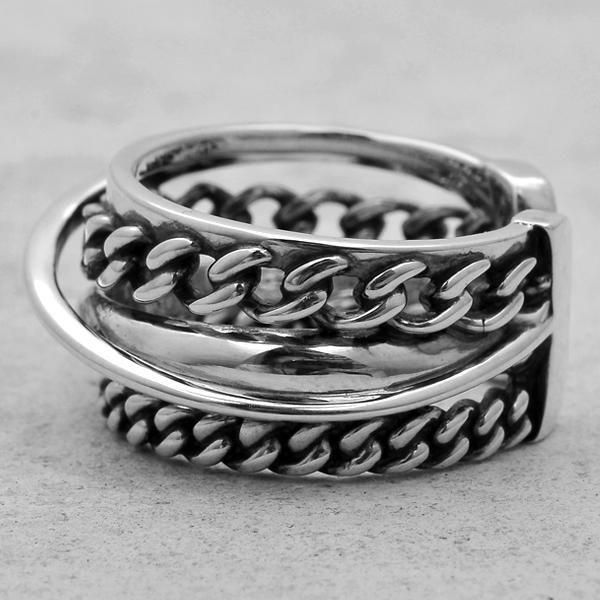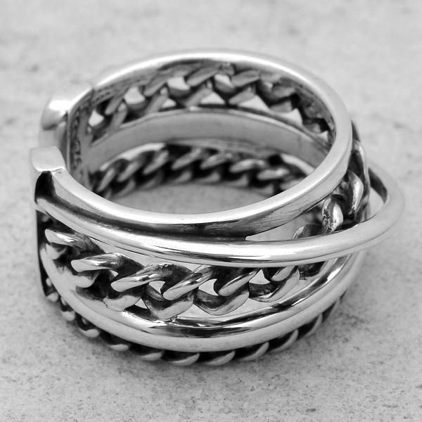 サイズが異なる喜平と甲丸リングが重なり合ったリングです。